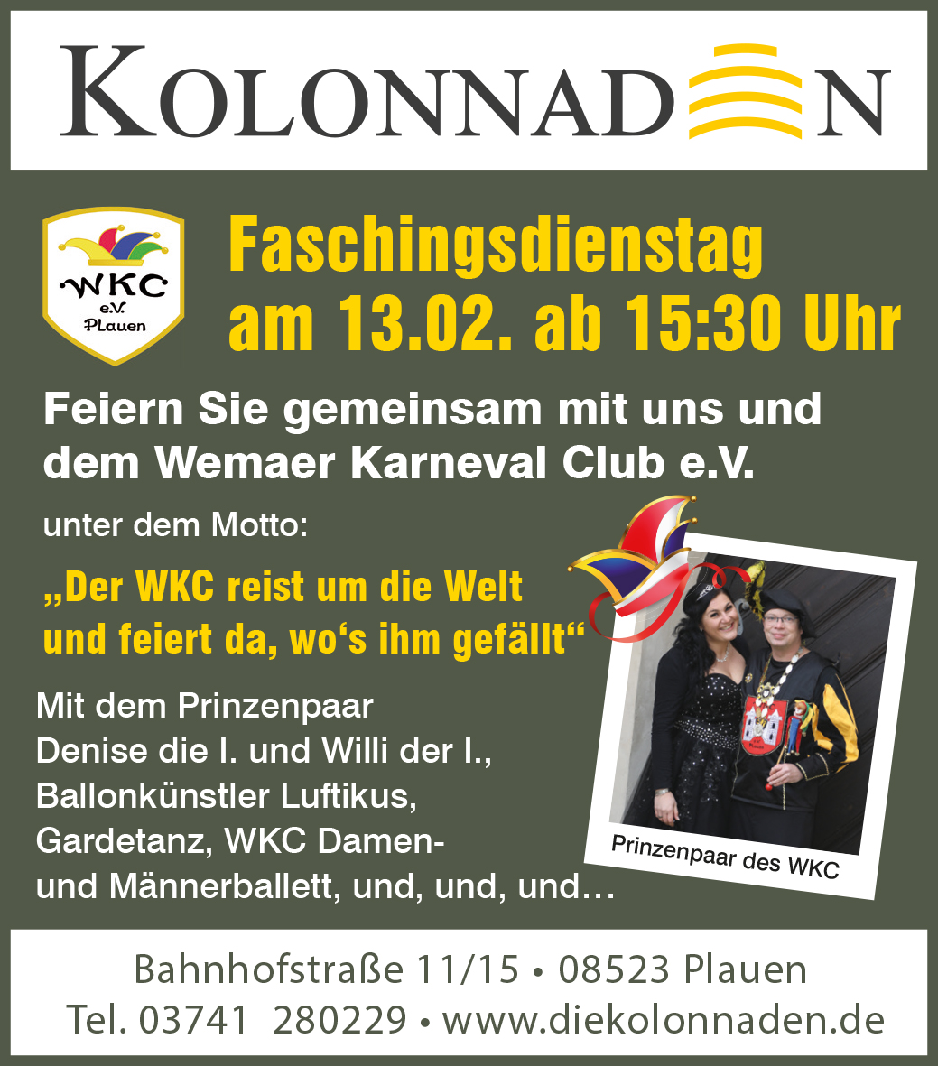 Feiern Sie gemeinsam mit uns und dem Wemaer Karneval Club e.V. unter dem Motto: „Der WKC reist um die Welt und feiert da, wo‘s ihm gefällt“